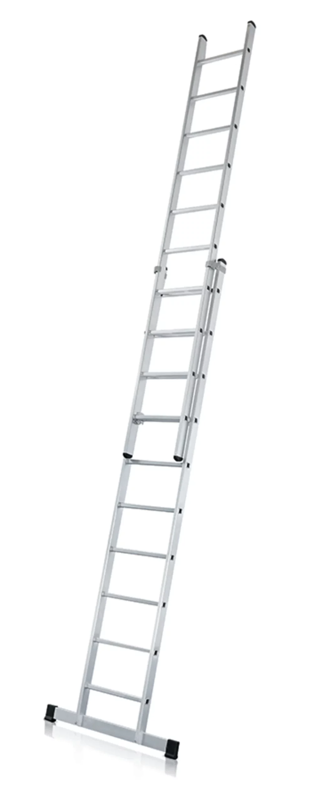 Mindkét létrarész támasztólétraként is használható a 40245-40247 rendelési szám esetén. Nagy állásbiztonság a különösen széles alsó létraelemnek köszönhetően (490 mm) 8,30 m magasságtól a felső létra fali vezető görgőkkel szerelve. Vezető görgők kopásálló, falat kímélő futófelülettel. Magassága 280 mm-es lépésekben kényelmesen és pontosan állítható létrafoktól létrafokig. Műanyag csúszásvédelem és elemelkedésgátló. A cserélhető kétkomponensű műanyag talpkupakok csúszásmentes használatot tesznek lehetővé.