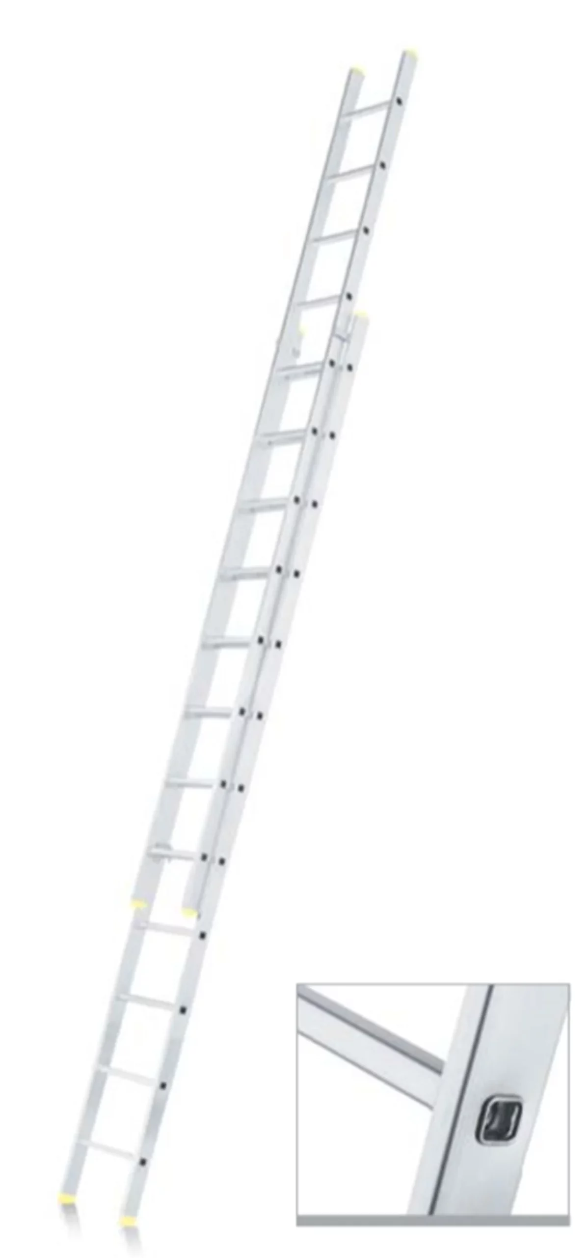 Magassága kényelmesen és pontosan, fokról-fokra állítható. Mindkét létraelem külön is használható támasztólétraként. A létraszár húzott alumínium profilból készül, ami kiváló stabilitást biztosít. A cserélhető kétkomponensű műanyag talpkupakok csúszásmentes használatot tesznek lehetővé. A szárban megfelelően vannak rögzítve. A fokok és létraszárak összekötése minőségi Zarges peremezéssel készül. Kitolt állapotban kampós zár gátolja meg a felső létraelem visszacsúszását. Az alsó létraelem külső szélessége 420 mm